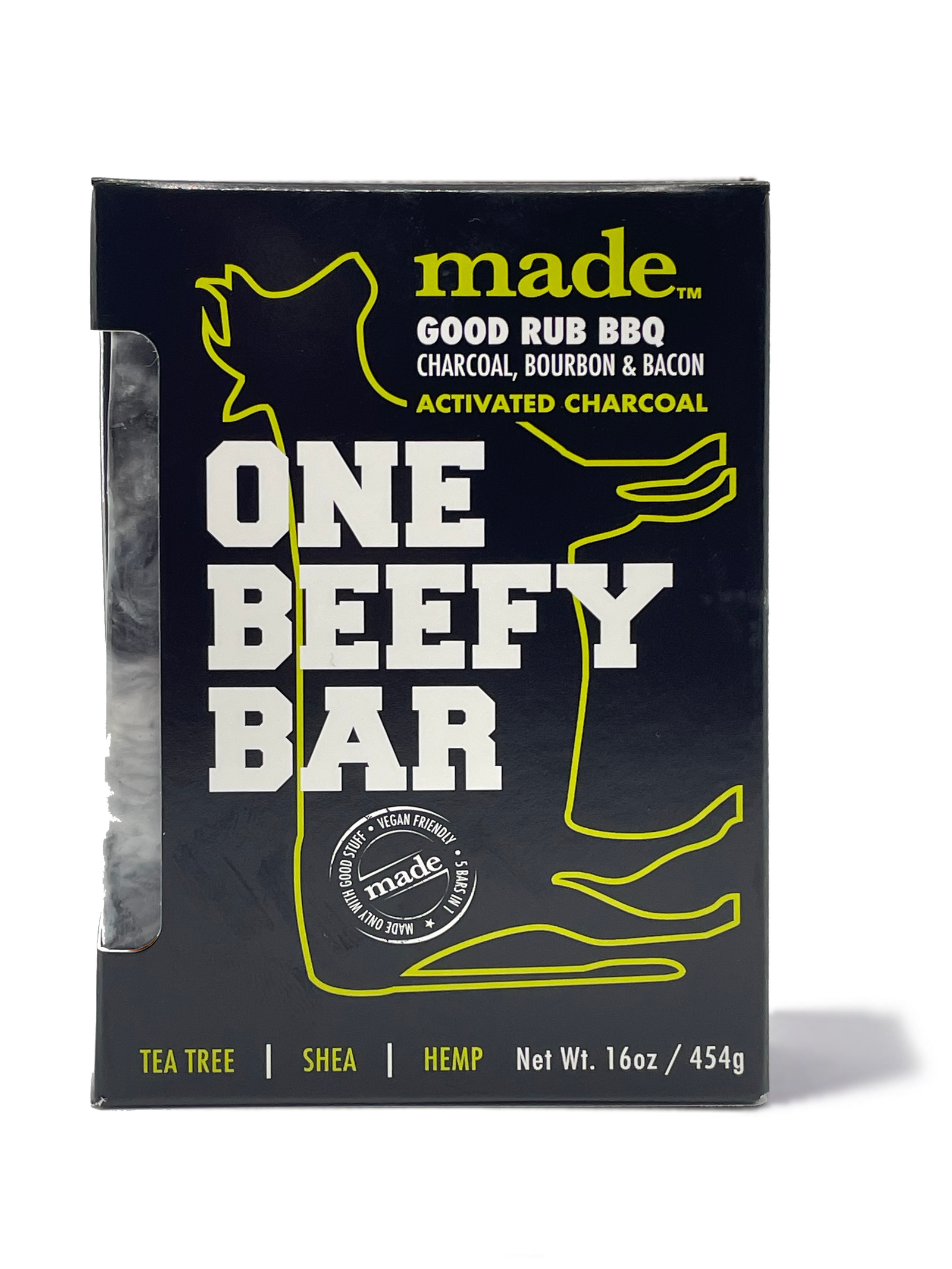 Good Rub, activated charcoal with a bourbon and bacon fragrance. a recipe for detox, retox and repeat.
